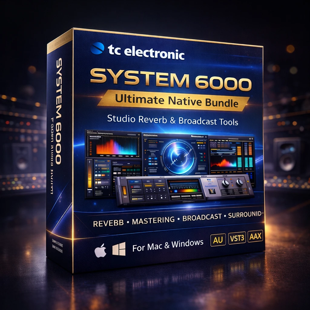 The TC Electronic System 6000 Ultimate Native Bundle delivers legendary reverb algorithms, mastering processors, surround tools, and broadcast-grade dynamics for professional Mac and Windows production studios.